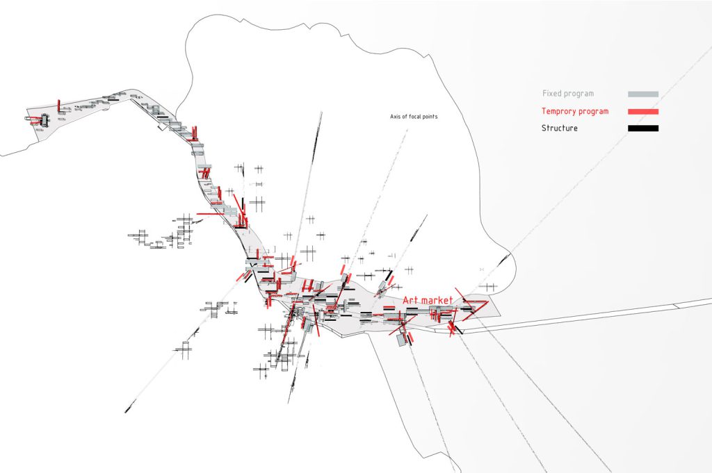 The Architecture aspect of this project is based on the Masterplan. So we have temporary structures that host temporary programs