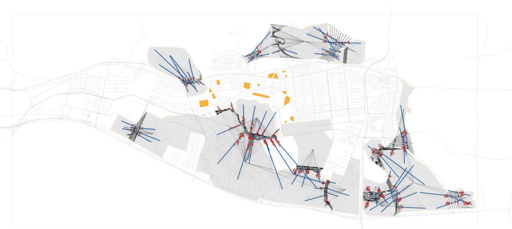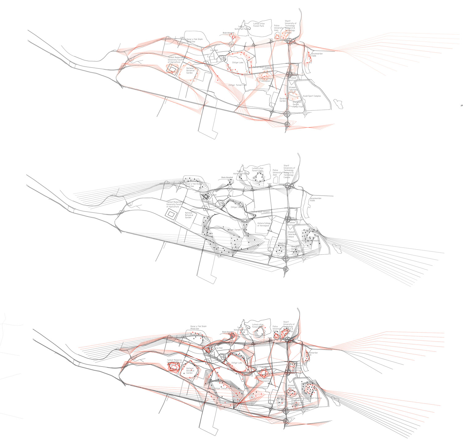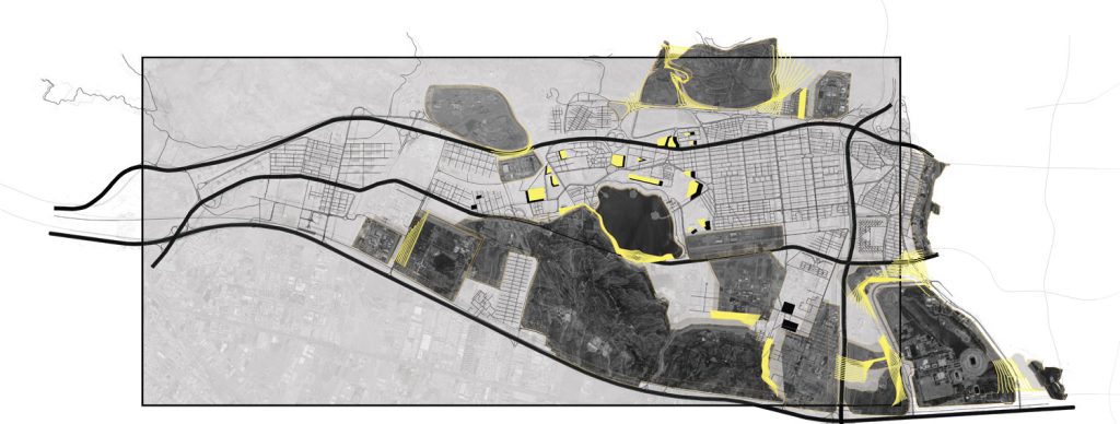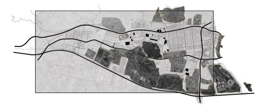 Actually, alleys and neighborhoods have no place in this district, but its highways and blocks are the main features that stand out. There are no hierarchies, and everything is integrated into the town cities. District 22 is a large structure that contains small and large structures, creating specific patterns and networks, some separated and some continuous. Pointed programs with different strengths have defined neutral spots among themselves, creating non-functional spaces. Due to this, we can see the district as islands that behave differently from each other. Emptiness and fullness, working with inside and outside, centered and scattered are some of the noticeable measurements of the district. District 22 can be seen as an isolated package that, although insists on its isolated and objective nature, has intentions for continuous flows and creating them among its isolated colonies.
